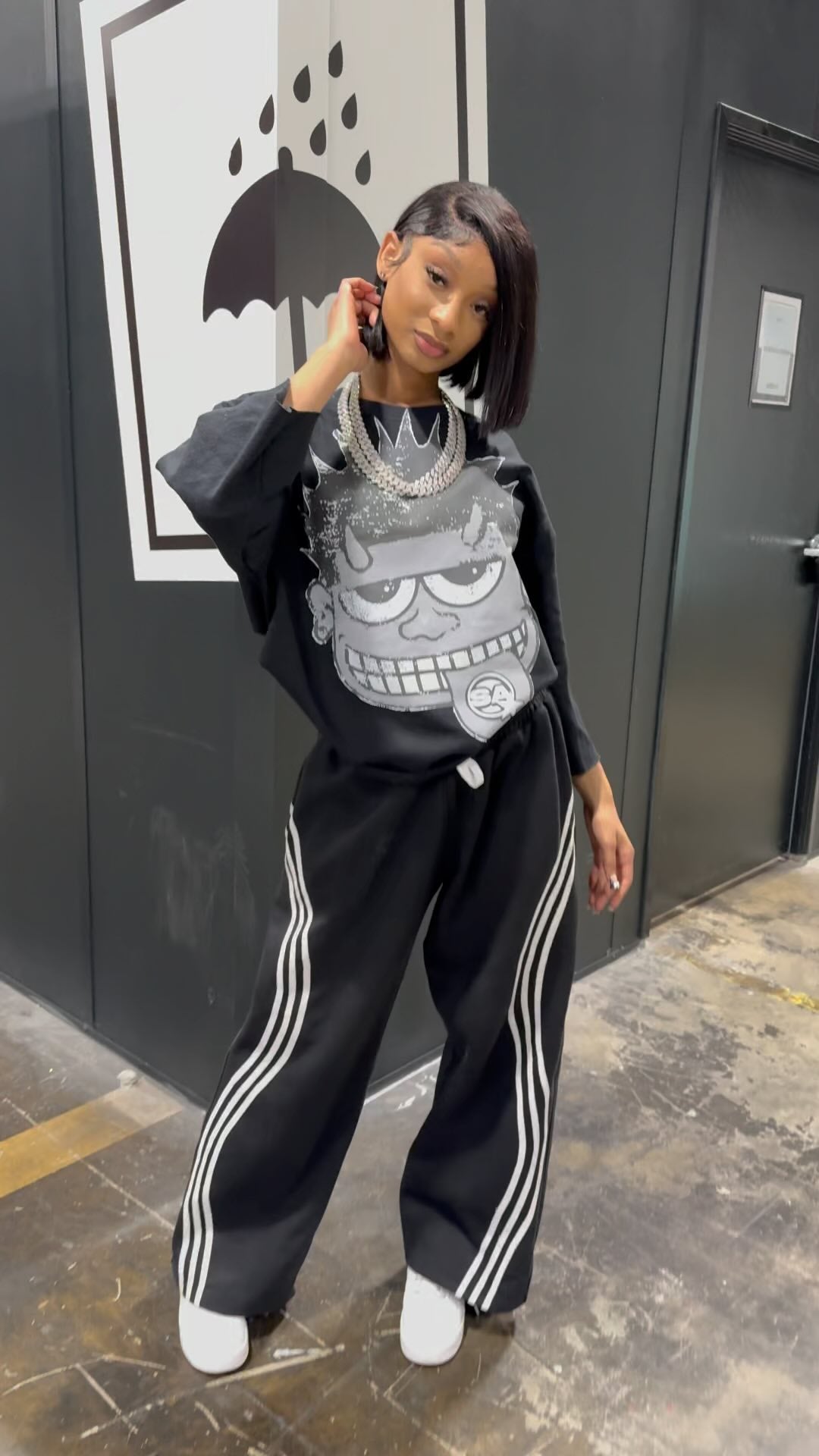 MONSTER GREY BLACK CROPPED TEE