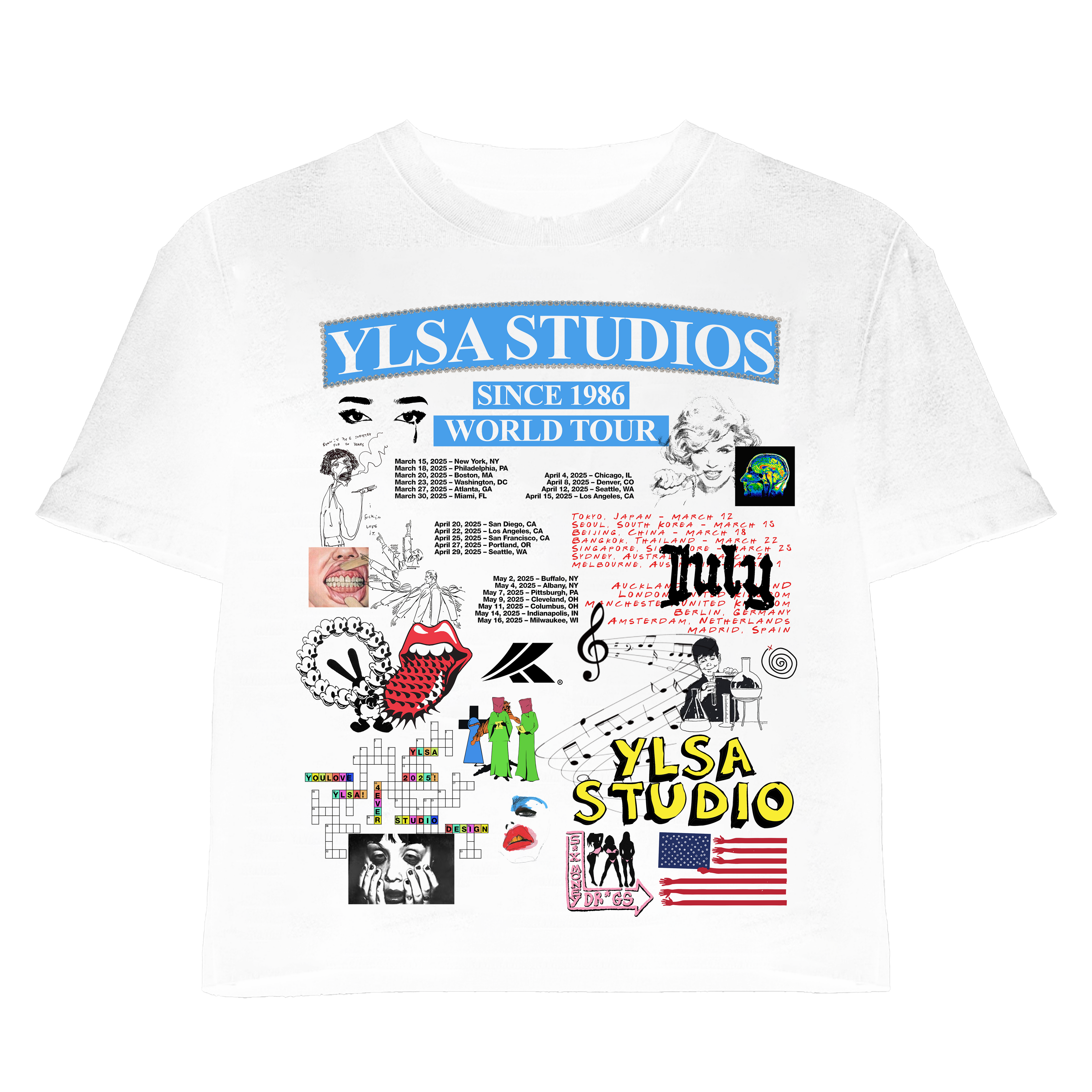YLSA 1986 WORLD TOUR BLUE WHITE TEE
