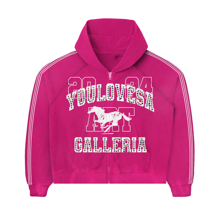 YLSA PINK RHINESTONE BALL HOG HOODIE