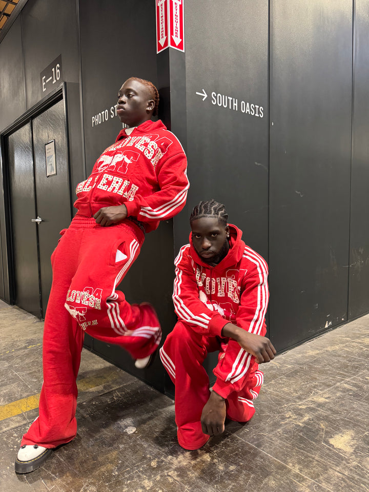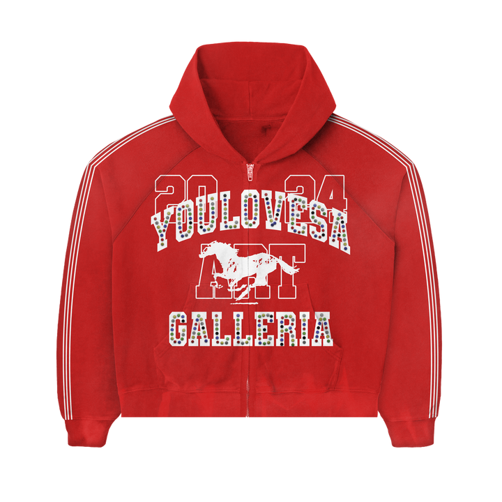 YLSA RED RHINESTONE BALL HOG HOODIE