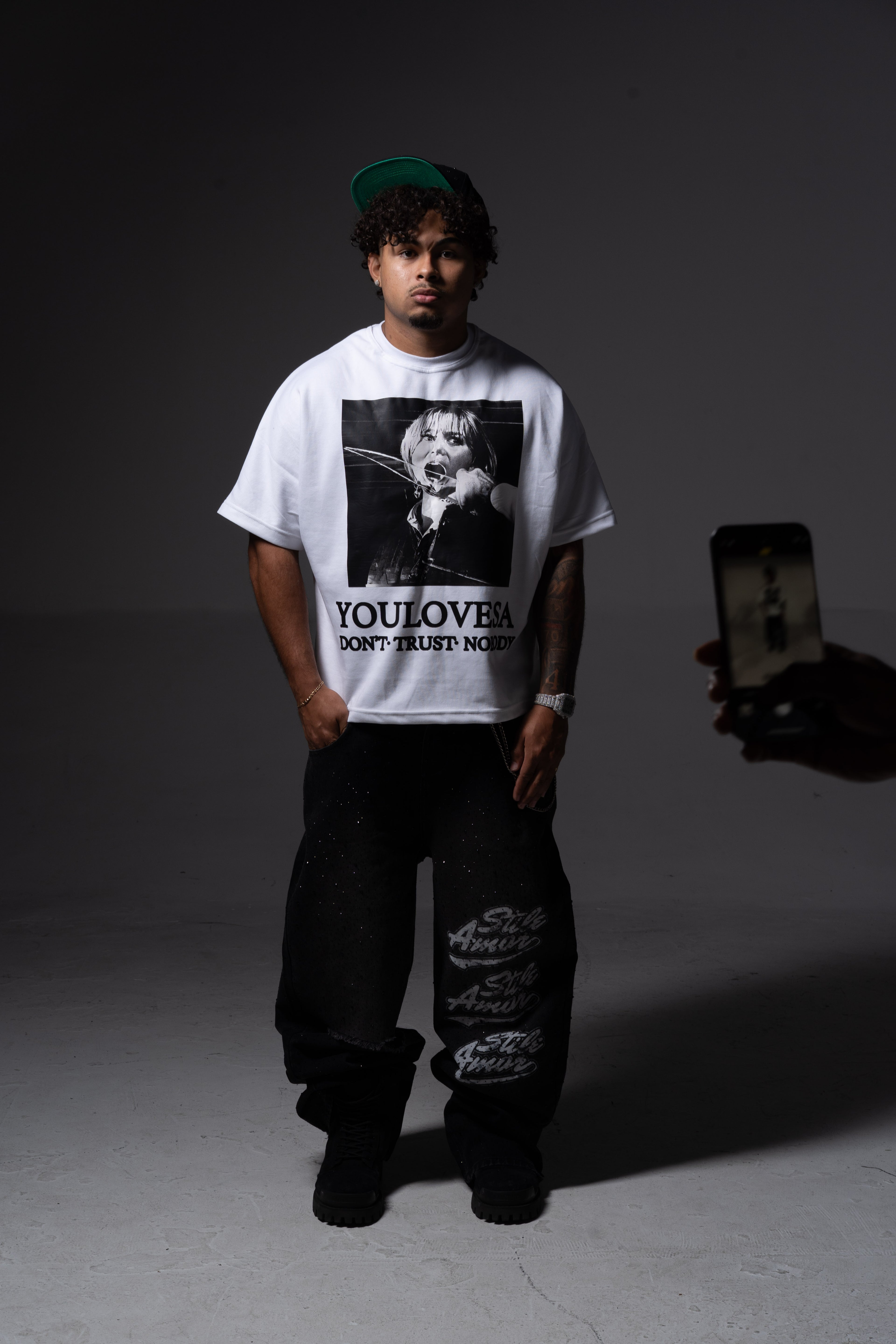 YLSA BLACK RHINESTONE BALL HOG HOODIE